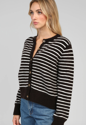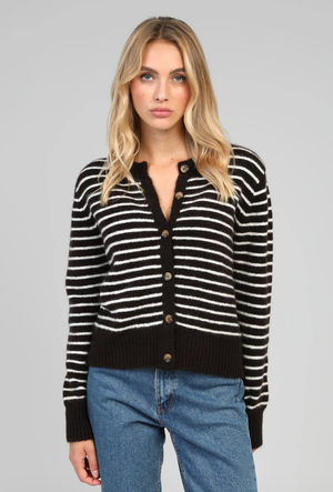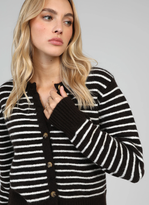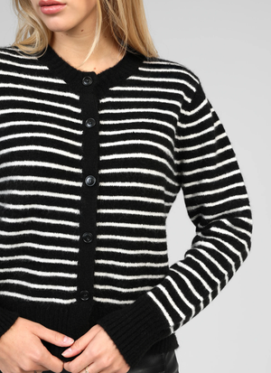 Doté de manches longues, ce gilet à rayures est parfait pour la mi-saison comme pour l’hiver. Facile à associer, il s’adopte aussi bien avec une jupe qu’un pantalon pour un style glamour et féminin, sans effort.
