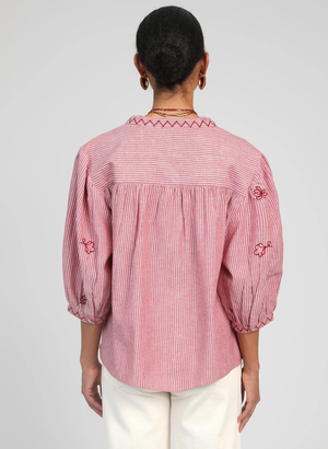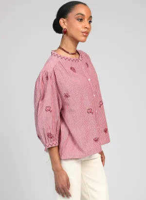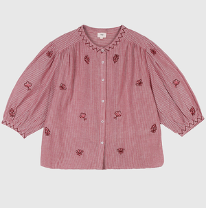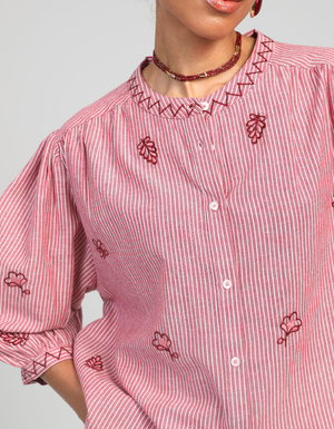 Cette blouse rayée brodée est une pièce pleine de douceur et de féminité, idéale pour apporter une touche romantique à votre dressing. Son tissu finement rayé, associé à de délicates broderies florales, lui donne un charme authentique et élégant.
