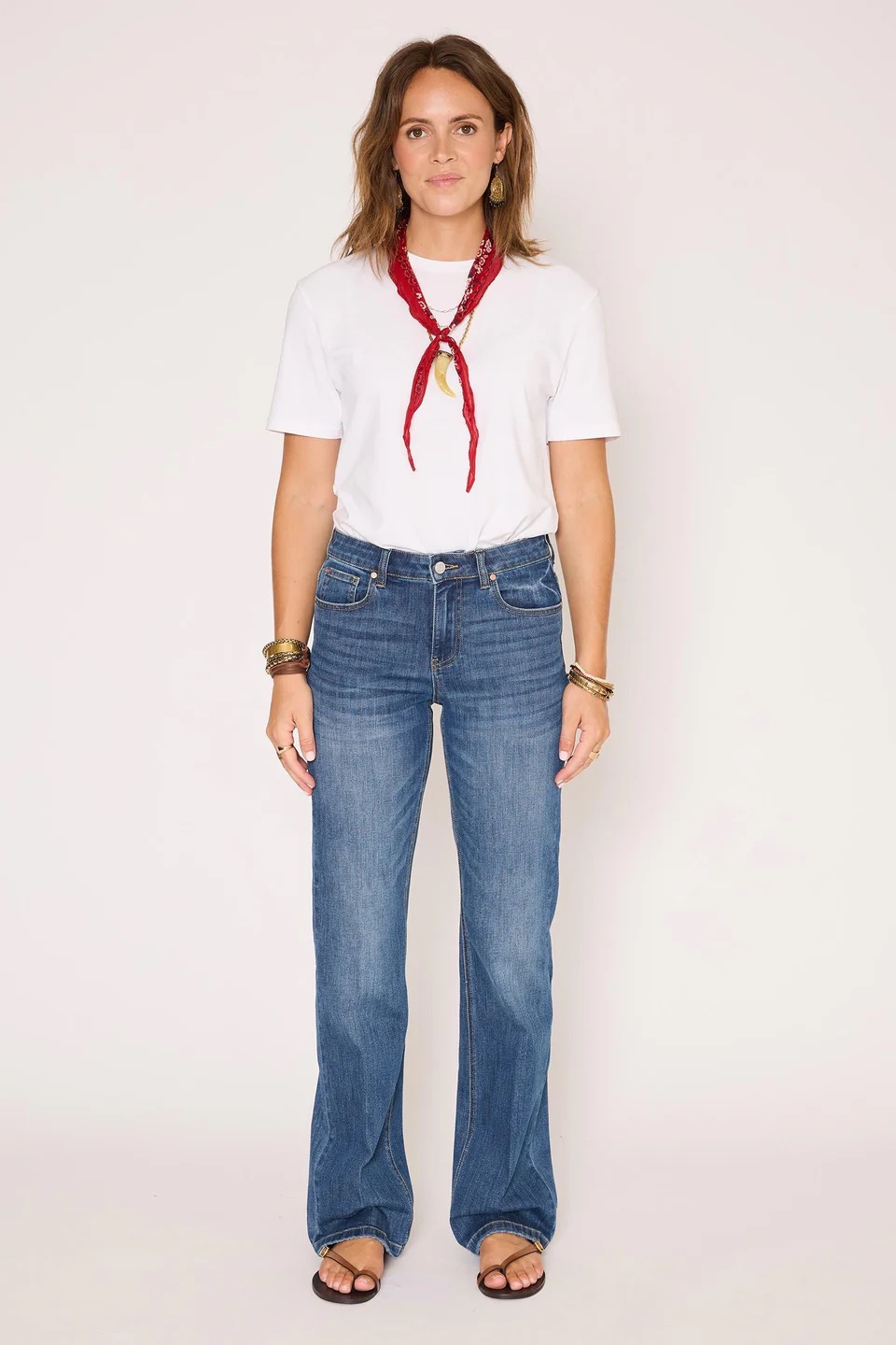 Le jean Mercury est un indispensable du dressing féminin. Avec sa coupe droite légèrement évasée et son denim bleu intemporel, il offre une silhouette à la fois moderne et facile à porter.