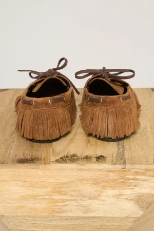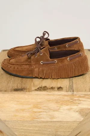 Un incontournable revisité avec caractère. Ces mocassins en daim séduisent par leur allure authentique et leur finition soignée. Le cuir suédé, souple et chaleureux, est sublimé par des franges délicates qui apportent une touche bohème subtile.