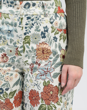Ce pantalon imprimé à coupe large est une pièce forte qui apporte immédiatement une touche romantique et glamour à la silhouette. Son tissu imprimé floral, délicat et féminin, en fait un choix idéal pour composer des looks élégants et originaux, tout en restant faciles à porter au quotidien.
