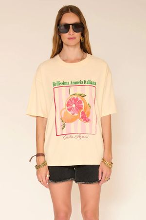 Apportez une touche estivale et lumineuse à votre dressing avec ce t-shirt imprimé Arancia Italiana. Son illustration graphique d’orange aux inspirations italiennes évoque l’esprit Dolce Vita et les marchés méditerranéens.