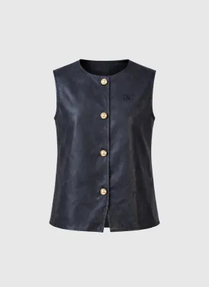 Le gilet sans manches en simili cuir est la pièce parfaite pour structurer une silhouette avec élégance. Son design épuré, souligné par de jolis boutons dorés, apporte une touche chic et contemporaine à toutes vos tenues.