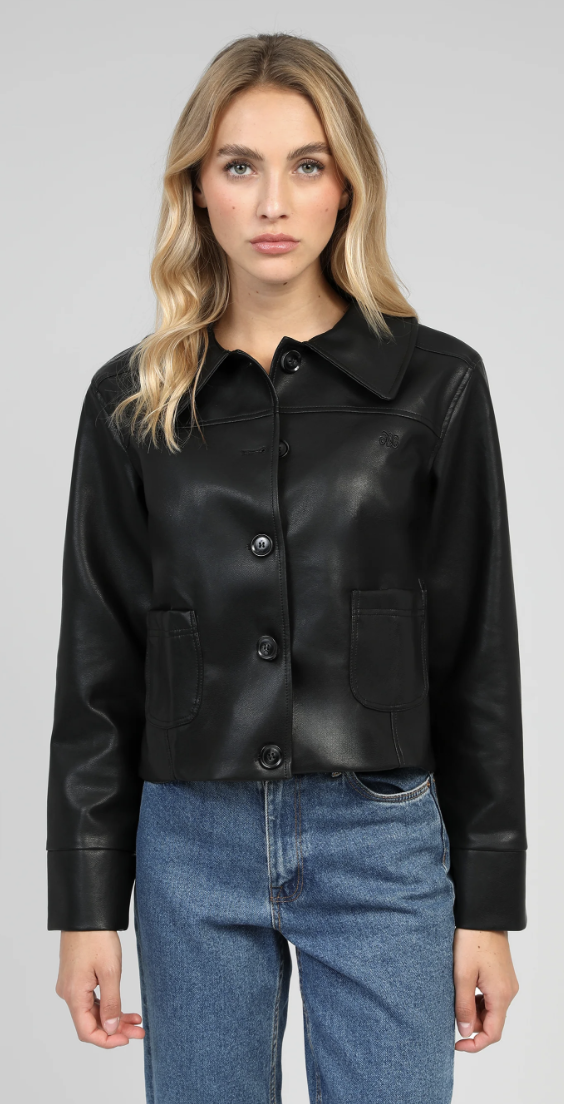Cette veste en similicuir est une pièce essentielle du vestiaire féminin, idéale pour apporter une touche moderne et élégante à toutes vos tenues. Sa coupe droite, structurée mais facile à porter, en fait une veste polyvalente, parfaite au quotidien comme pour des looks plus habillés.