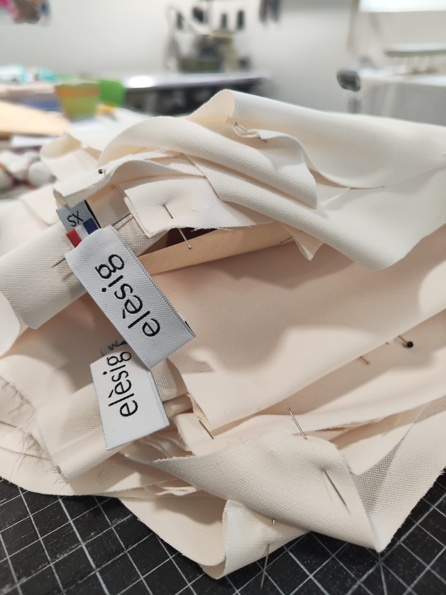 En plus d'une démarche basée sur l'upcycling en revalorisant des tissus dormants, Elèsig a décidé de ne rien jeter et de valoriser tout ce qui peut l'être. Ainsi, tous les boutons et accessoires sont chinés afin de leur donner une seconde vie, les chutes de tissus sont utilisées pour confectionner de jolis chouchous ou encore des sac cabas en velours côtelé.